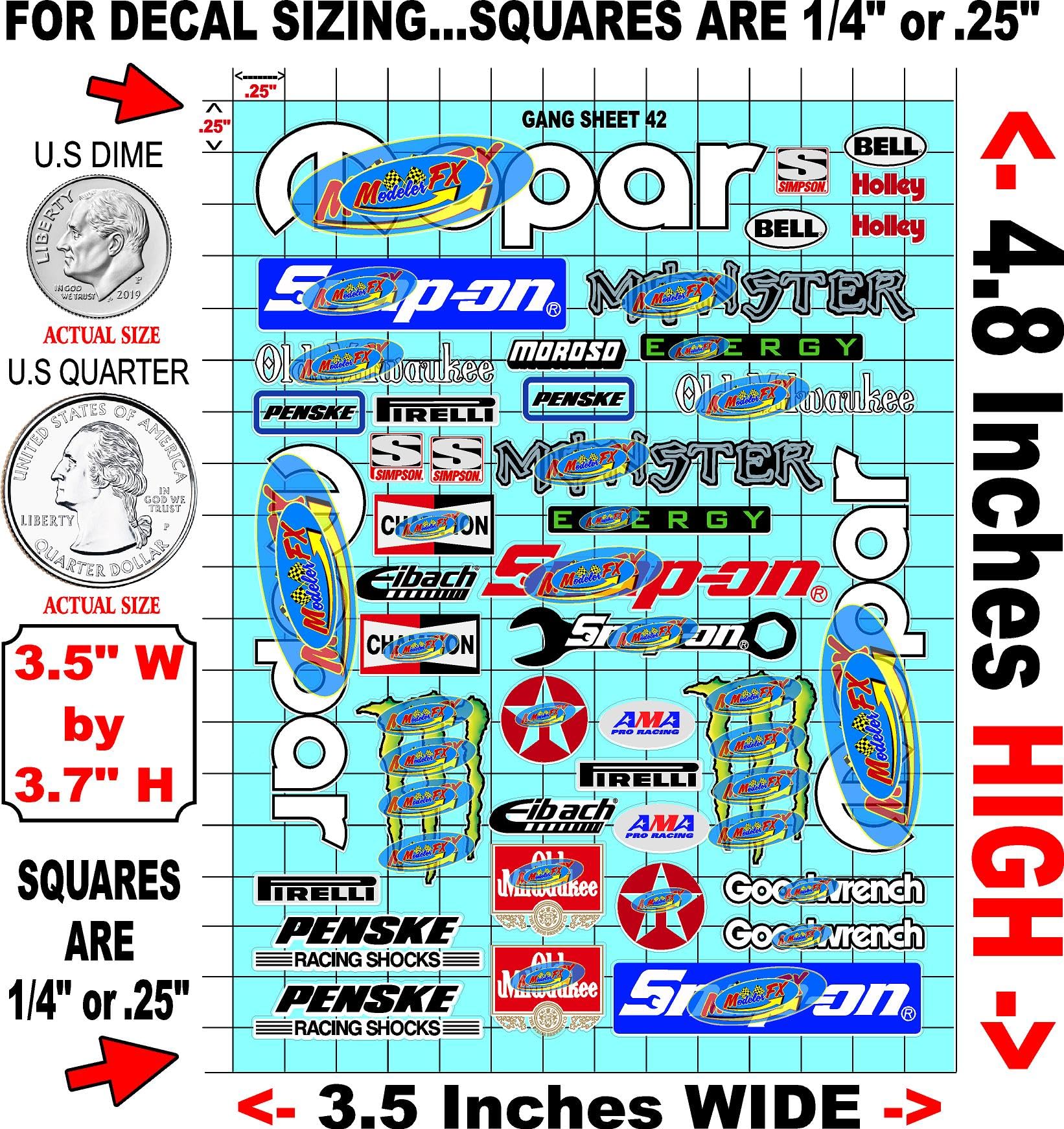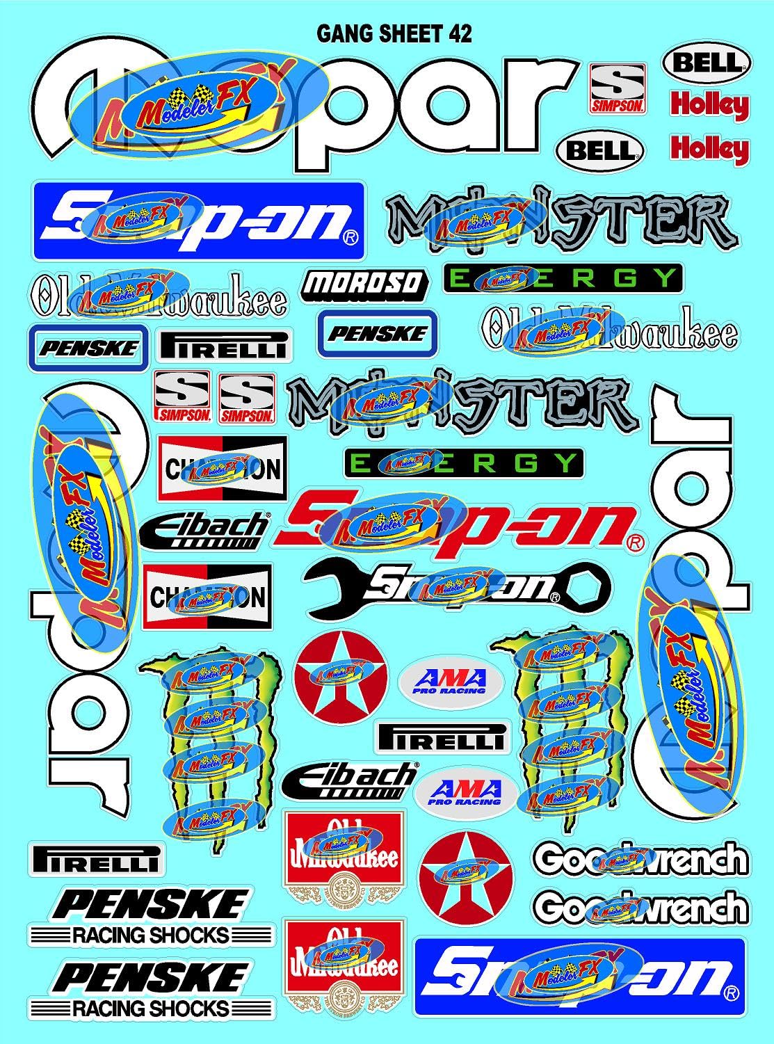 Clear matte Vinyl R/C Racing Sponsor Sticker Gang Sheet 42 -1/24 - 1/16th Scale Model Decal Sticker Sheet Radio Control Lexan Body - Decorate Your R/c Cars, Boats, Trucks Scale Model Die-cut to shape