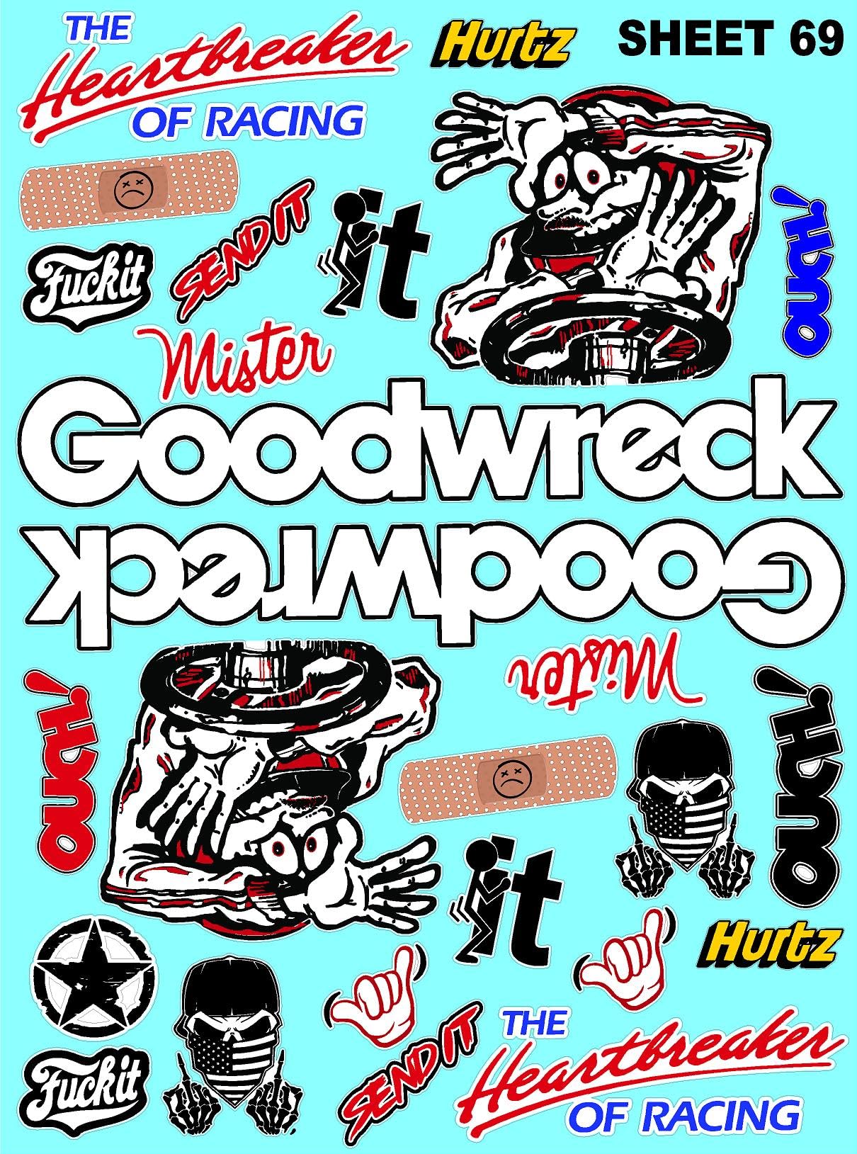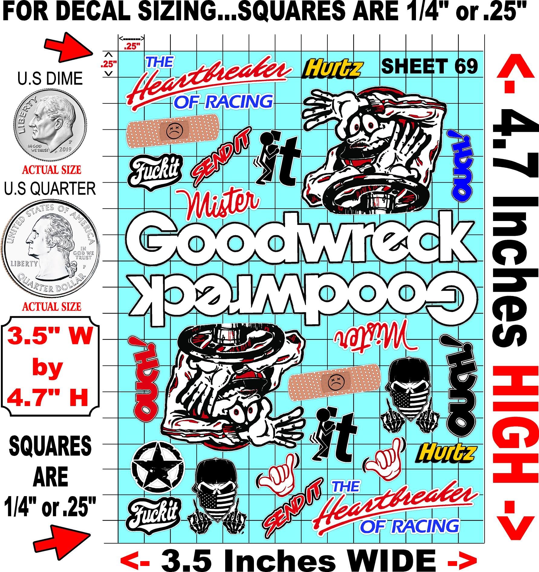 Clear Vinyl 69 R/C Racing Sponsor Sticker Gang Sheet Good -1/24 � 1/16th Scale Model Decal Sticker Sheet Radio Control Lexan Body � Die-Cut to Shape - Peel & Stick � Water Slide