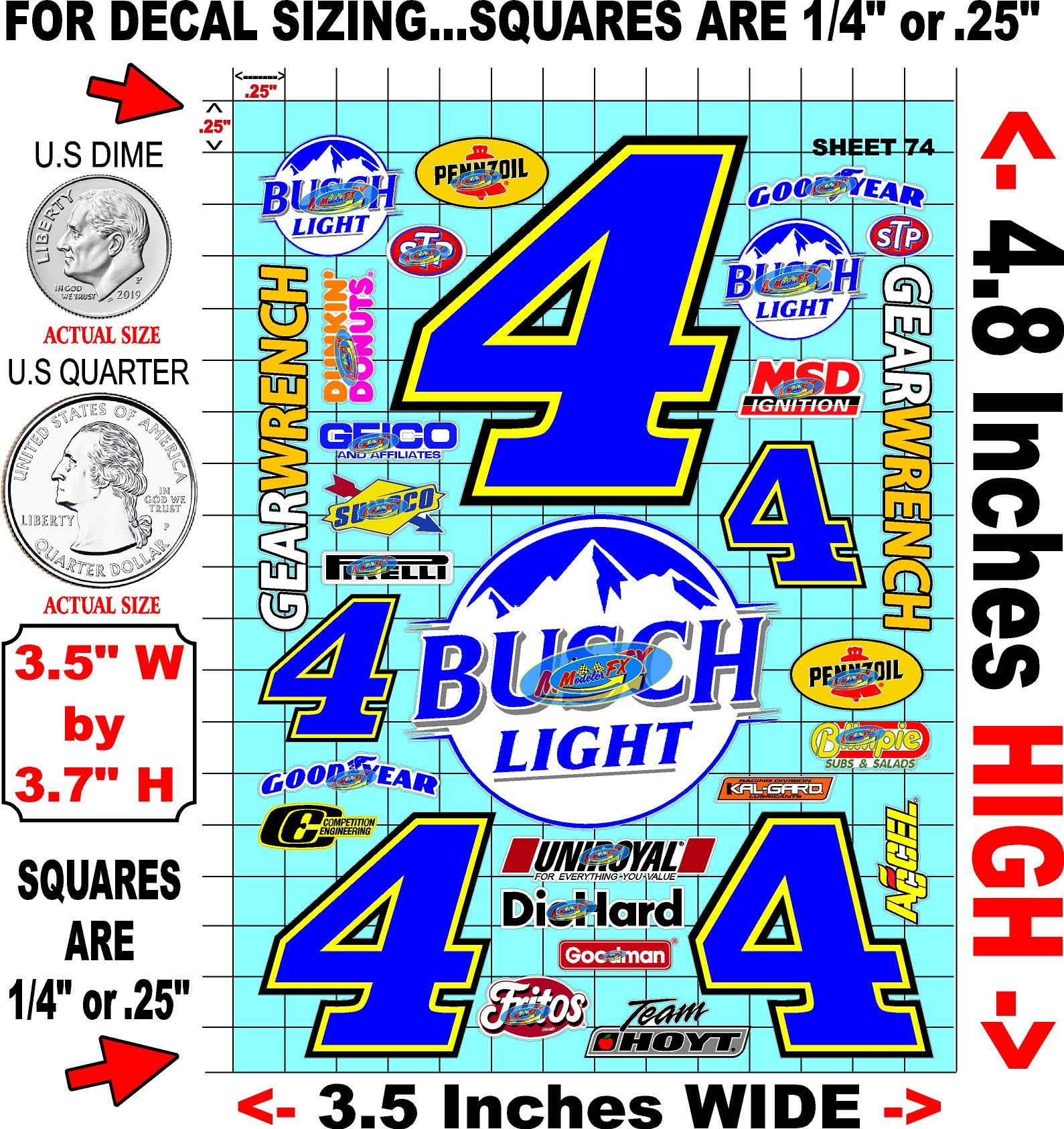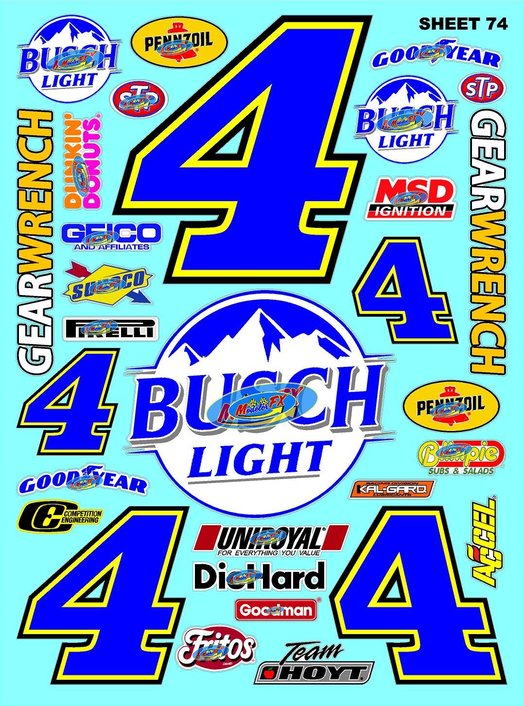 Clear Vinyl 74 R/C Racing Sponsor Sticker Gang Sheet Good -1/24 � 1/16th Scale Model Decal Sticker Sheet Radio Control Lexan Body � Die-Cut to Shape - Peel & Stick � Water Slide