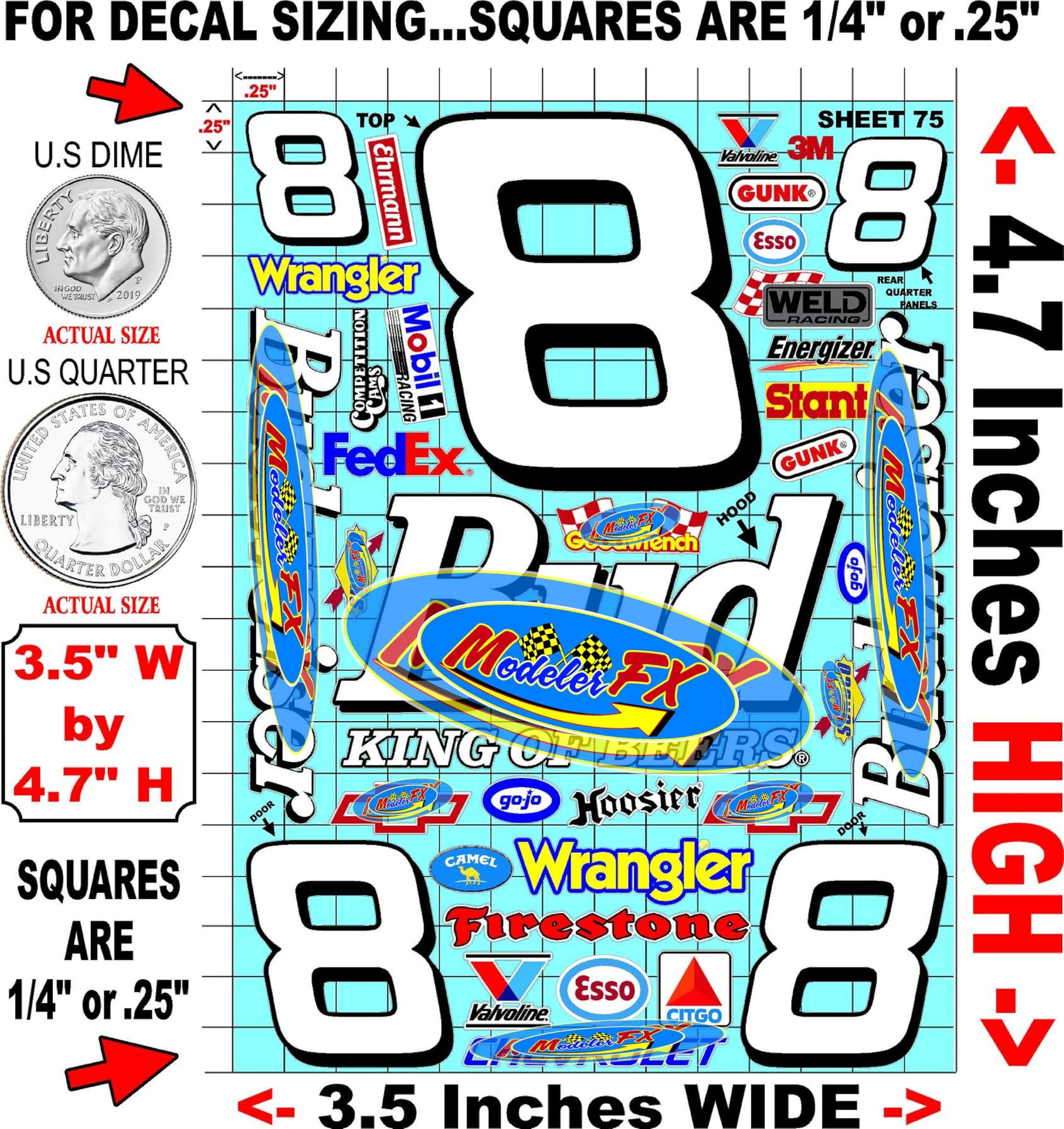 CLEAR Vinyl R/C 75 Racing Sponsor Sticker Gang sheet good-1/24 1/16th Scale Model Decal Sticker Sheet Radio Control Lexan Body Die-cut to shape - Peel & Stick Water Slide