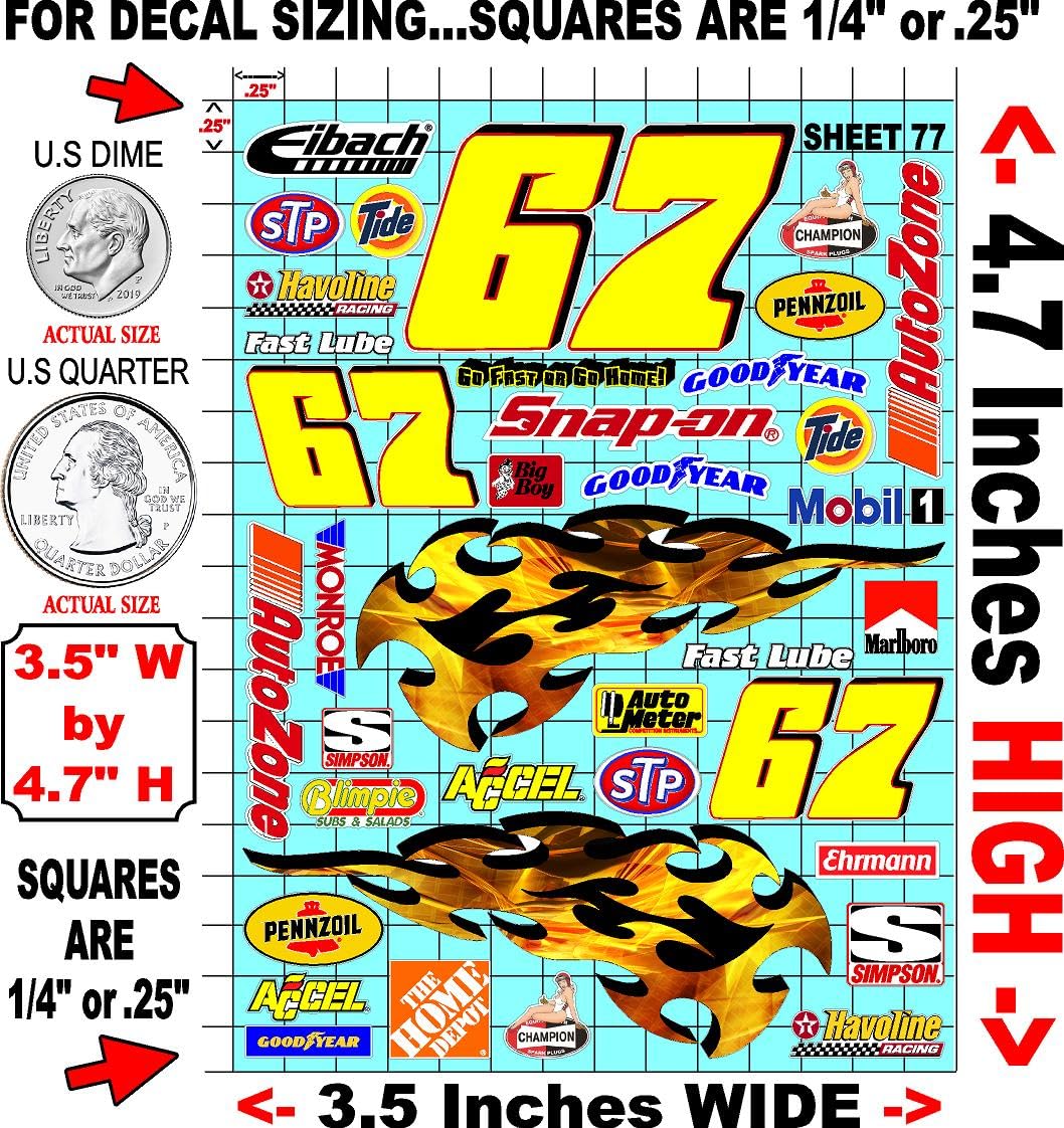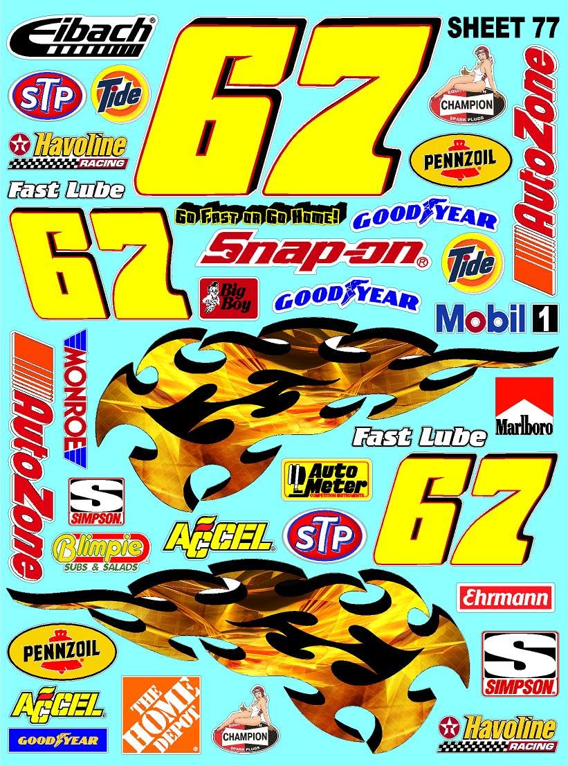 Clear Vinyl 77 R/C Racing Sponsor Sticker Gang Sheet Good -1/24 � 1/16th Scale Model Decal Sticker Sheet Radio Control Lexan Body � Die-Cut to Shape - Peel & Stick � Water Slide
