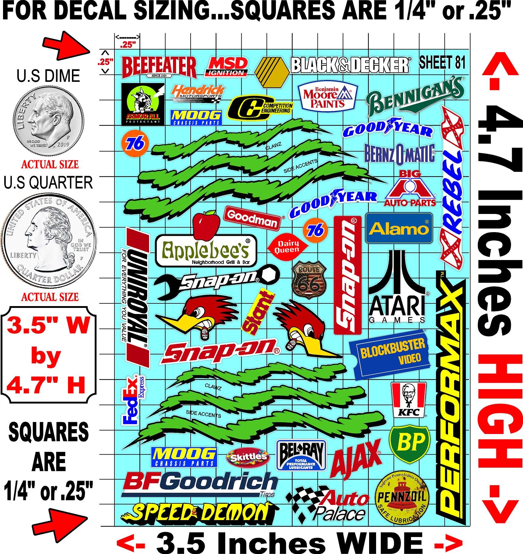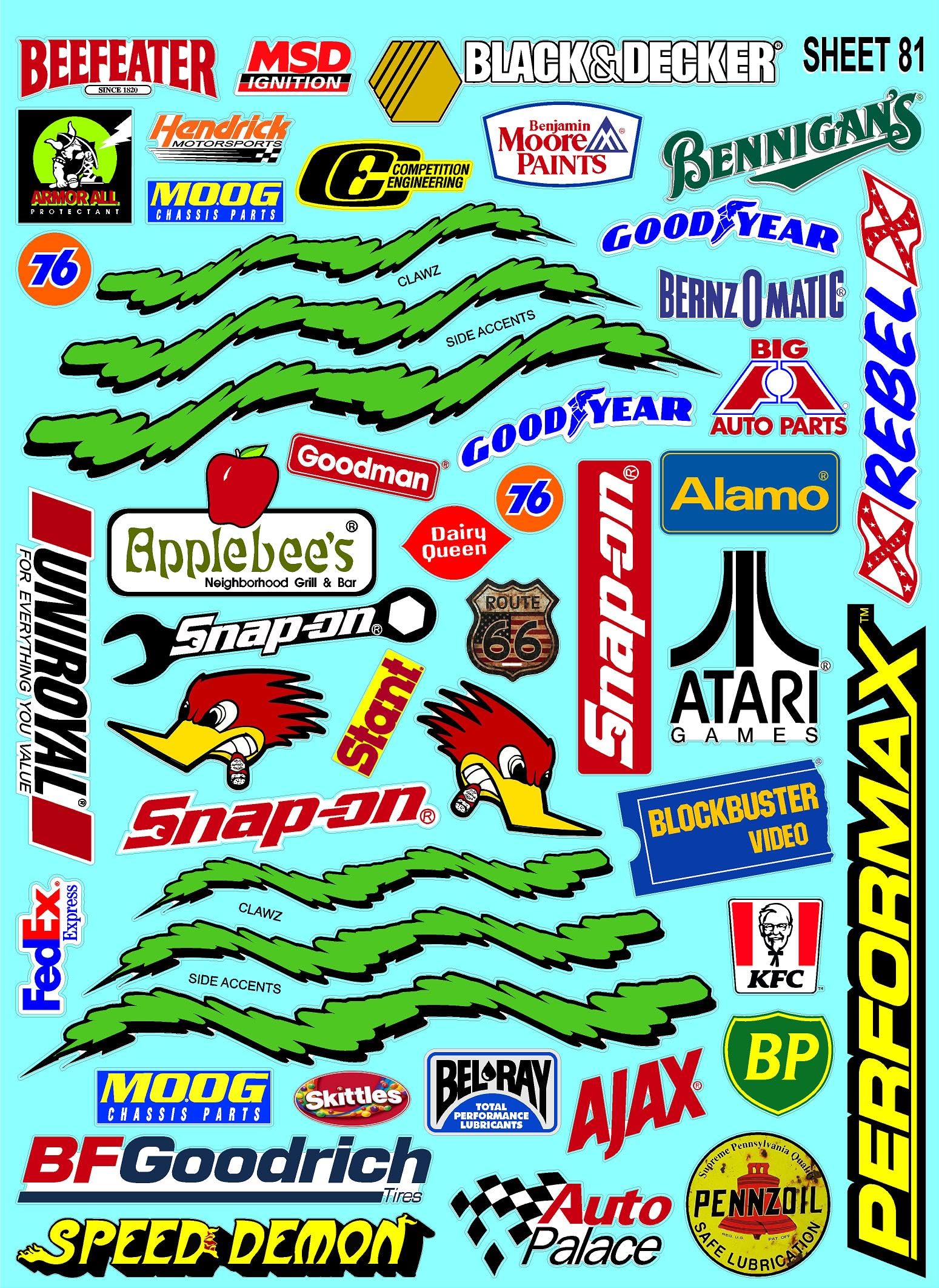 Clear Vinyl 81 R/C Racing Sponsor Sticker Gang Sheet Good -1/24 � 1/16th Scale Model Decal Sticker Sheet Radio Control Lexan Body � Die-Cut to Shape - Peel & Stick � Water Slide