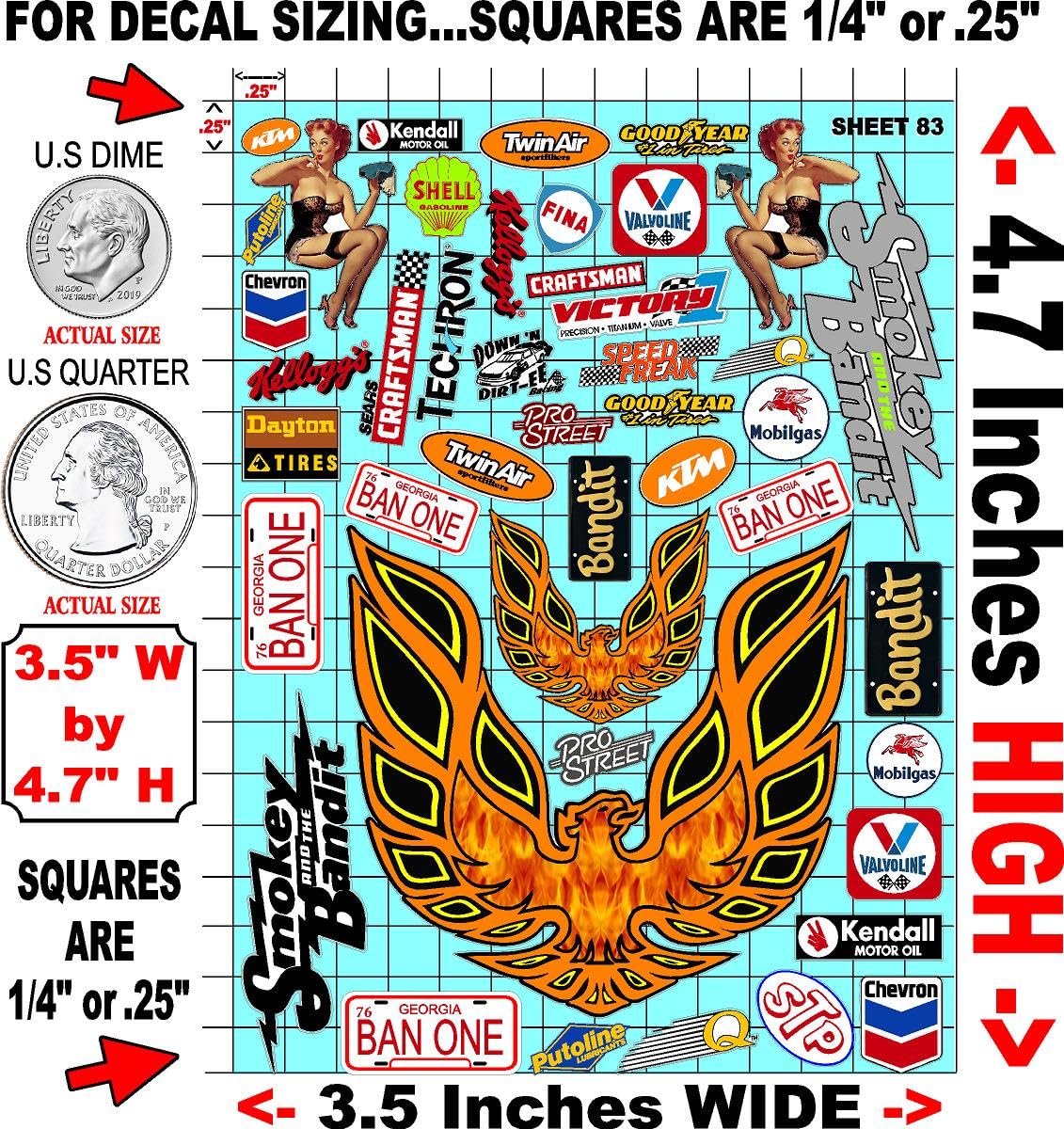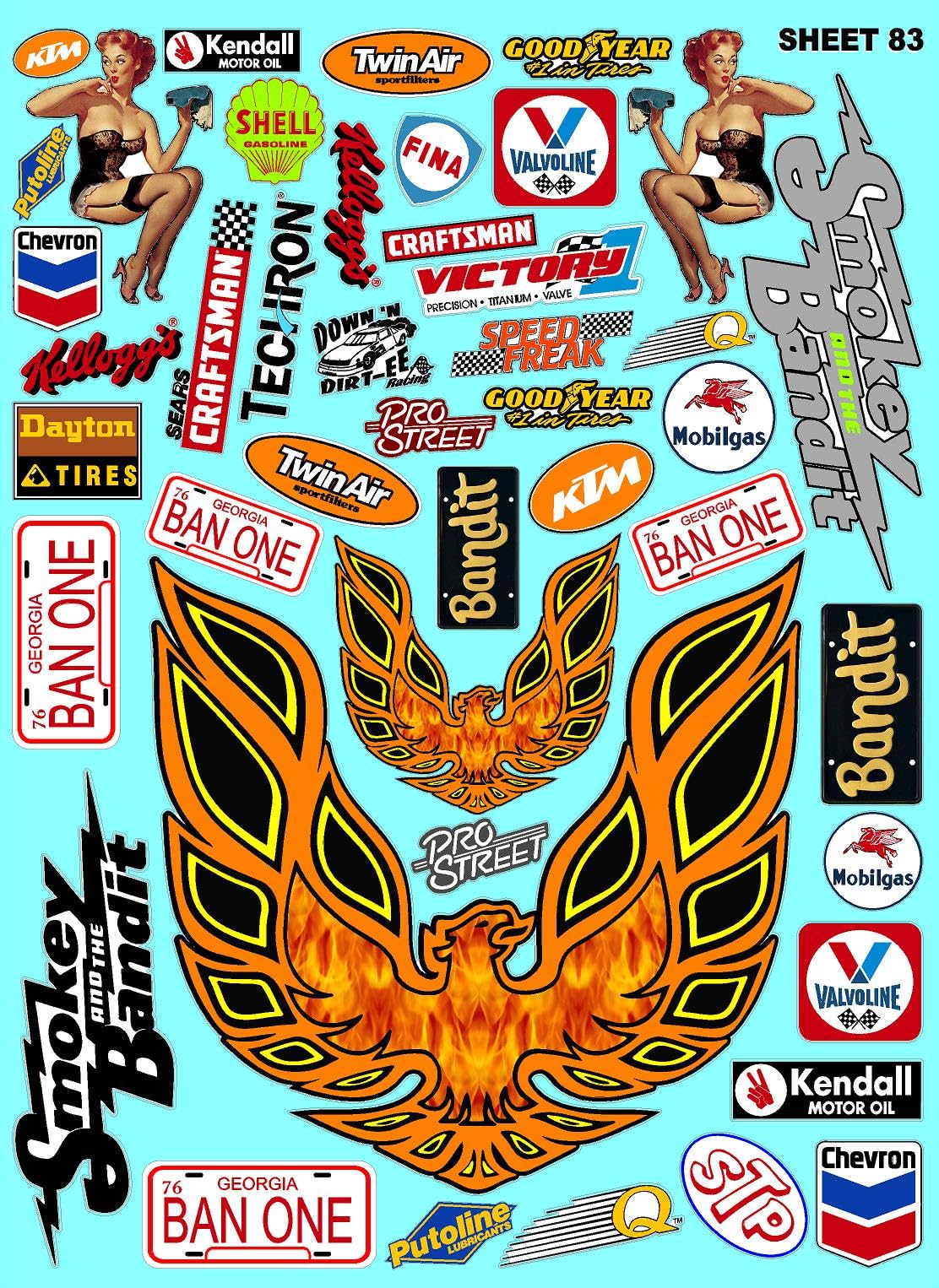Clear Vinyl 83 R/C Racing Sponsor Sticker Gang Sheet Good -1/24 � 1/16th Scale Model Decal Sticker Sheet Radio Control Lexan Body � Die-Cut to Shape - Peel & Stick � Water Slide