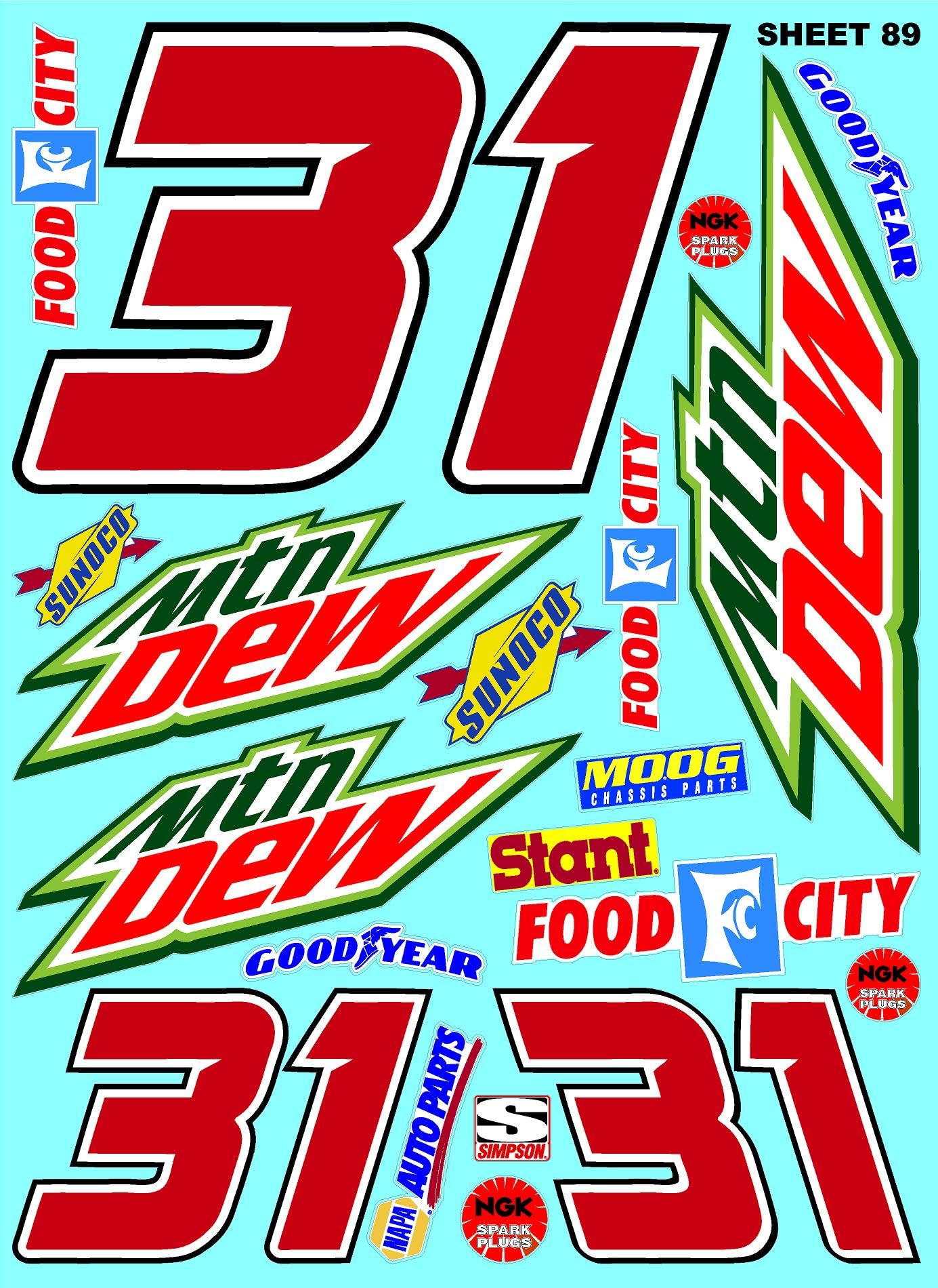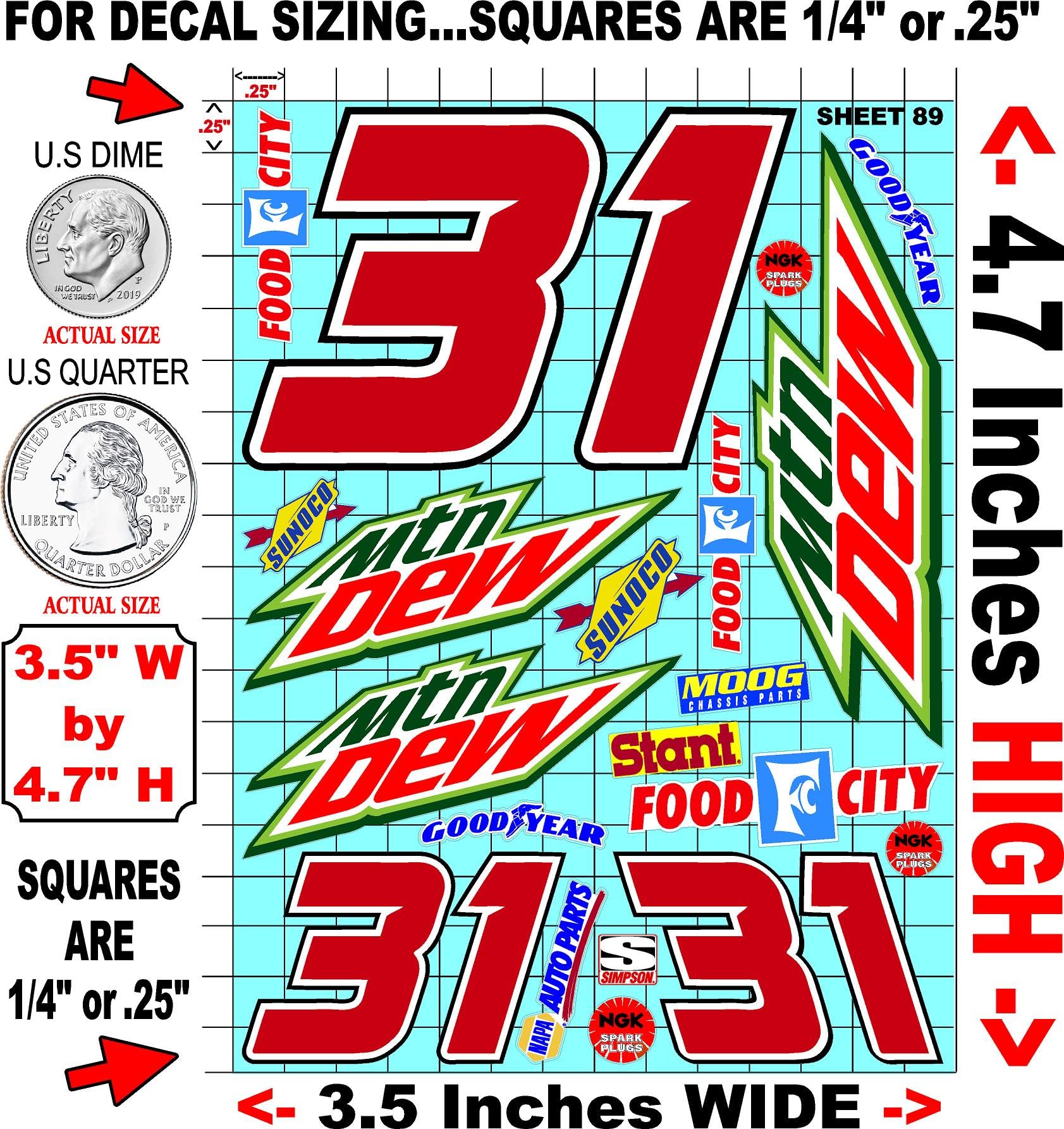 Clear Vinyl 89 R/C Racing Sponsor Sticker Gang Sheet Good -1/24 � 1/16th Scale Model Decal Sticker Sheet Radio Control Lexan Body � Die-Cut to Shape - Peel & Stick � Water Slide