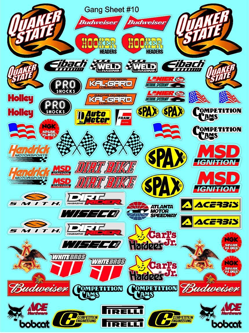 Clear Vinyl R/C Racing Sponsor Sticker Gang Sheet 10-1/8th � 1/10th Scale Model Decal Sticker Sheet R/C Lexan Body - Decorate Your R/c Cars, Boats, Truck Model � Die-Cut to Shape - Peel & Stick