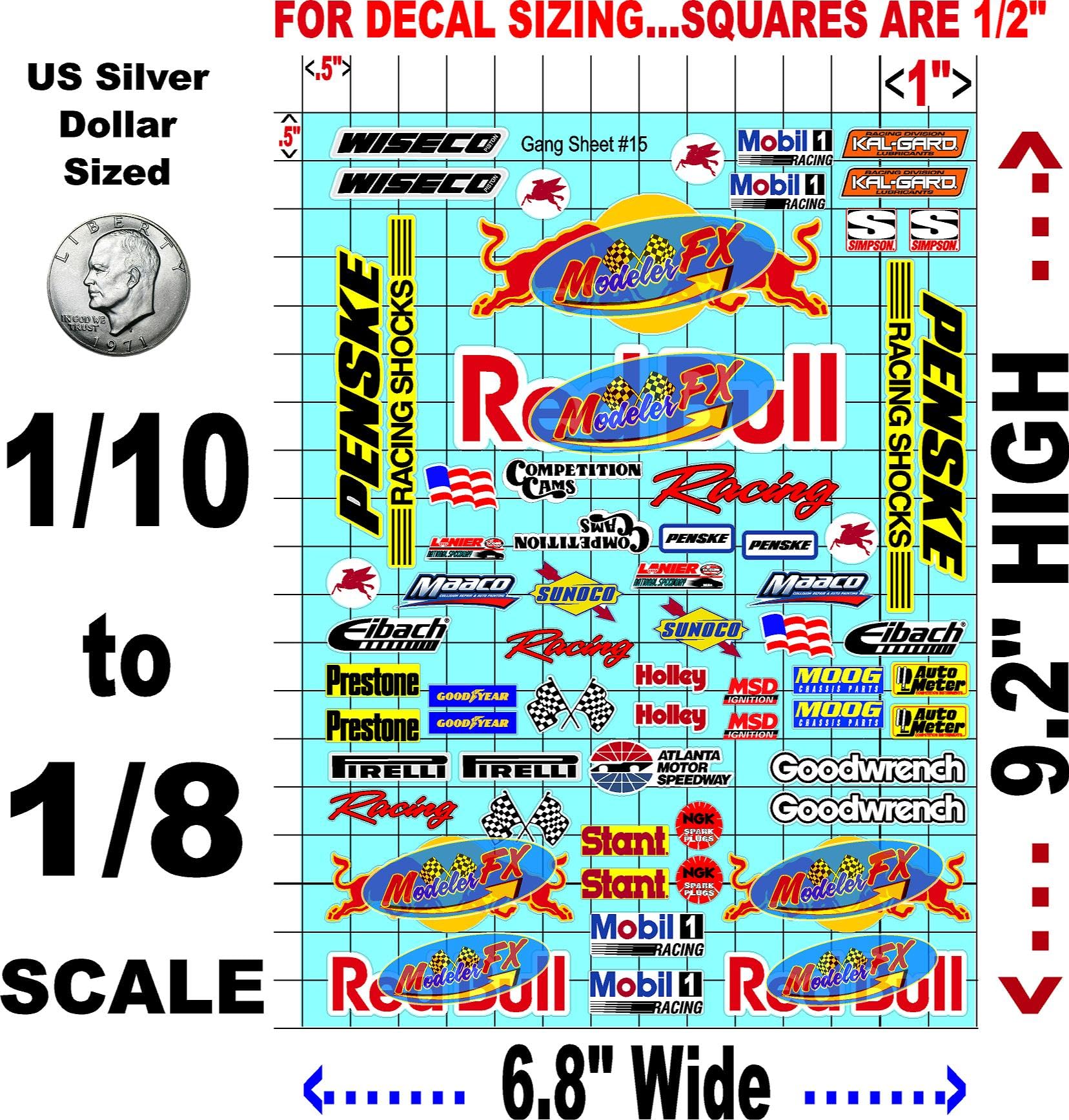 Clear Vinyl R/C Racing Sponsor Sticker Gang Sheet 15-1/8th � 1/10th Scale Model Decal Sticker Sheet R/C Lexan Body - Decorate Your R/c Cars, Boats, Truck Model � Die-Cut to Shape - Peel & Stick
