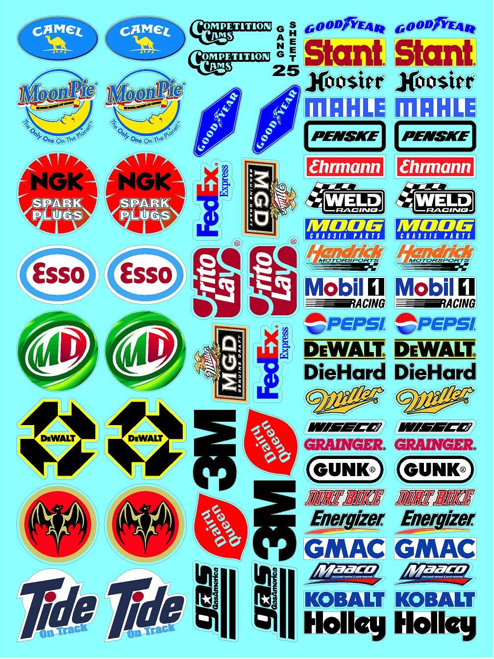 Clear Vinyl R/C Racing Sponsor Sticker Gang Sheet 25-1/8th � 1/10th Scale Model Decal Sticker Sheet R/C Lexan Body - Decorate Your R/c Cars, Boats, Truck Model � Die-Cut to Shape - Peel & Stick