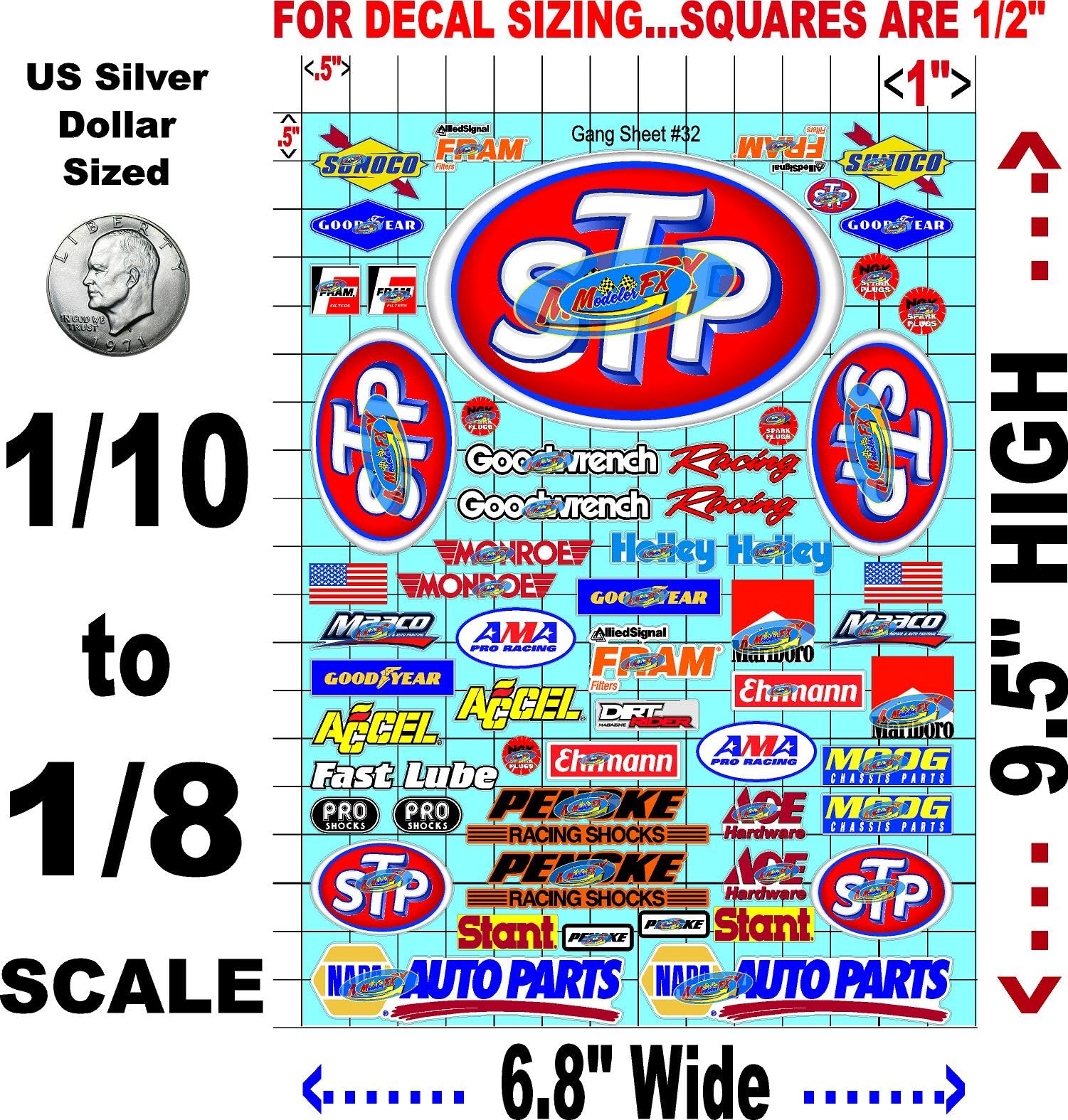 Clear Vinyl R/C Racing Sponsor Sticker Gang Sheet 32-1/8th � 1/10th Scale Model Decal Sticker Sheet R/C Lexan Body - Decorate Your R/c Cars, Boats, Truck Model � Die-Cut to Shape - Peel & Stick