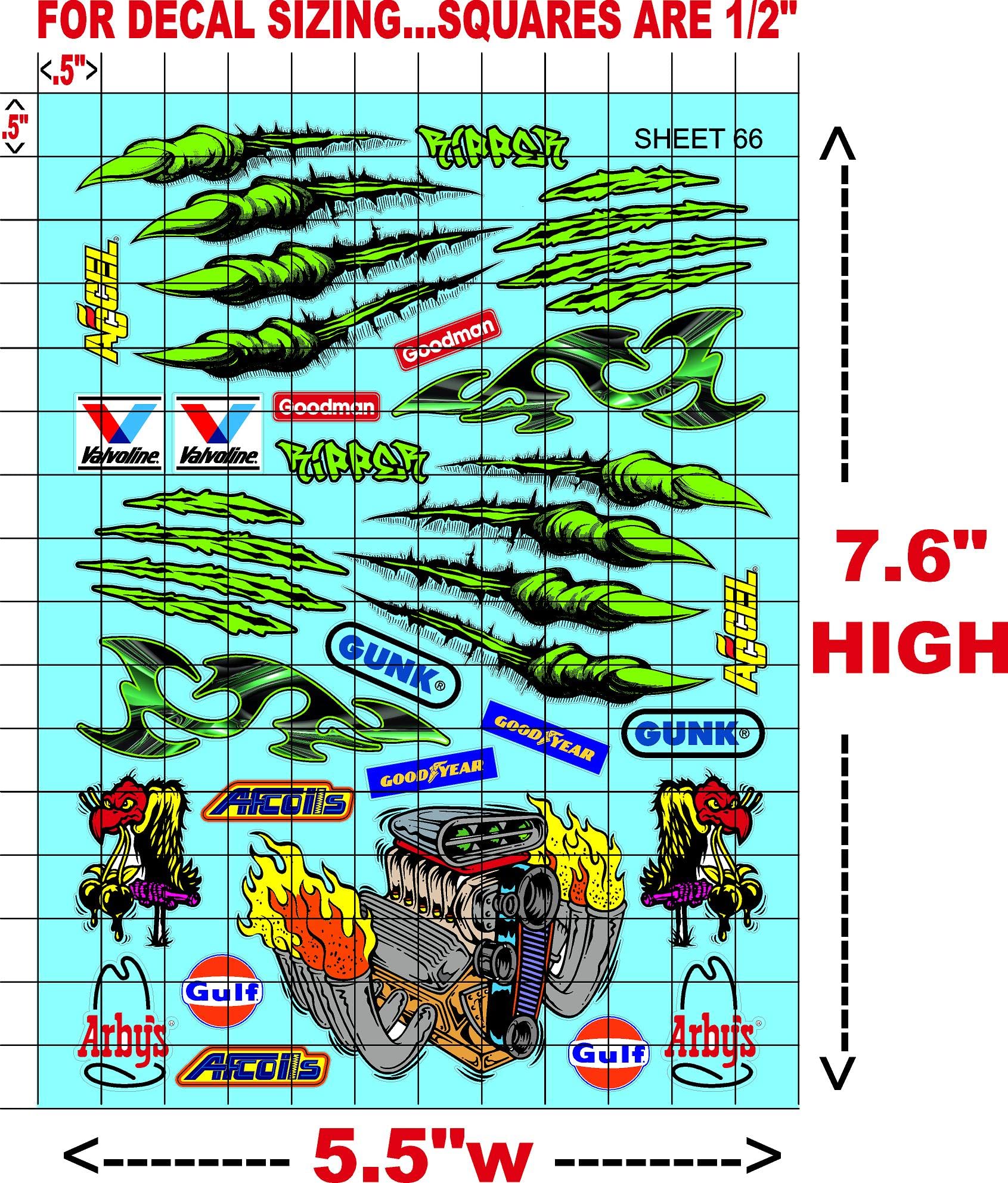 Clear Vinyl Sticker Sheet 66-CLAWZ-R/C Model Decal-1/12-1/10th Scale DIE-Cut-Peel Radio Control | Slot Cars | U/V Printed Scale DIE Cut- R/C Model