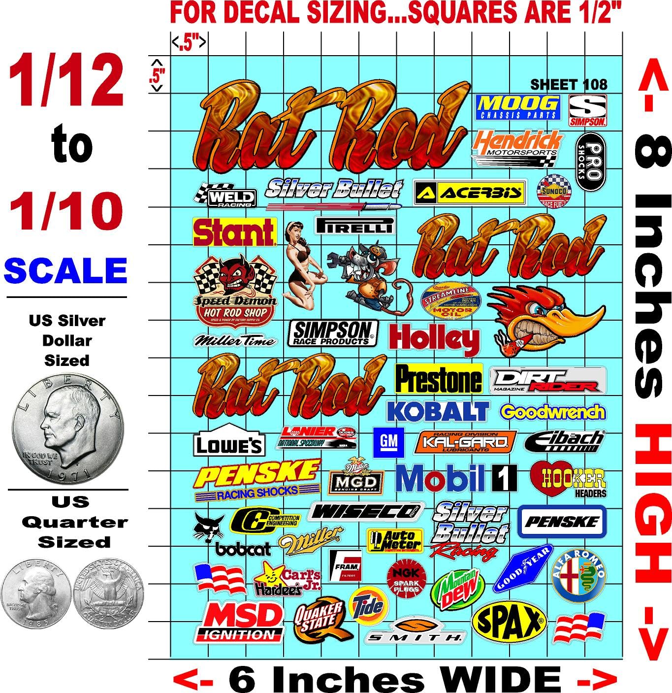 CLEAR Vinyl Sticker Sheet 108 Rat Rod Variety - 1/12 to 1/10th Scale R/C Model Decal Sticker Sheet Radio Control Lexan Body