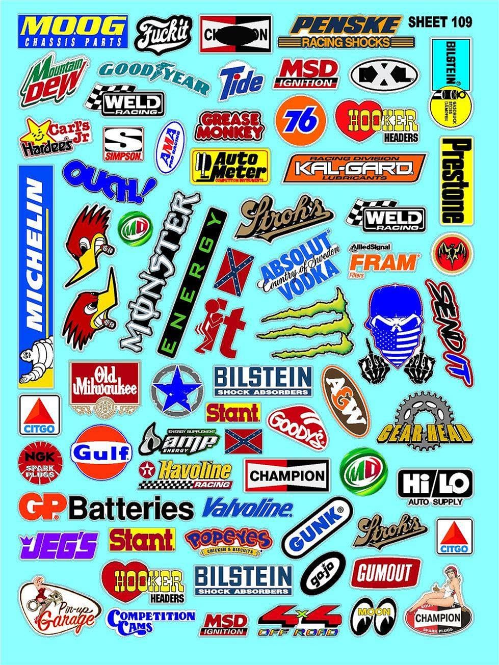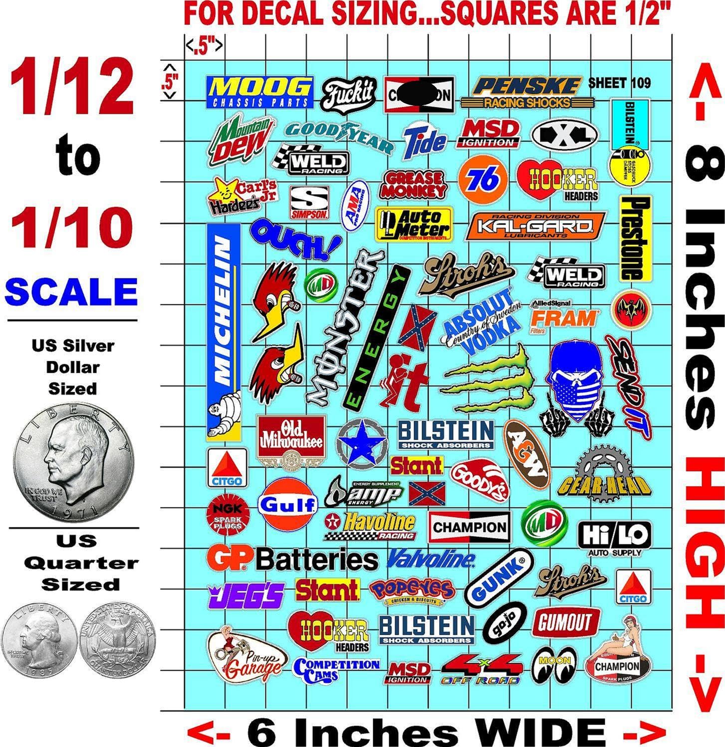 Clear Vinyl Sticker Variety Sheet 109 Variety - 1/12 to 1/10th Scale R/C Model Decal Sticker Sheet Radio Control Lexan Body