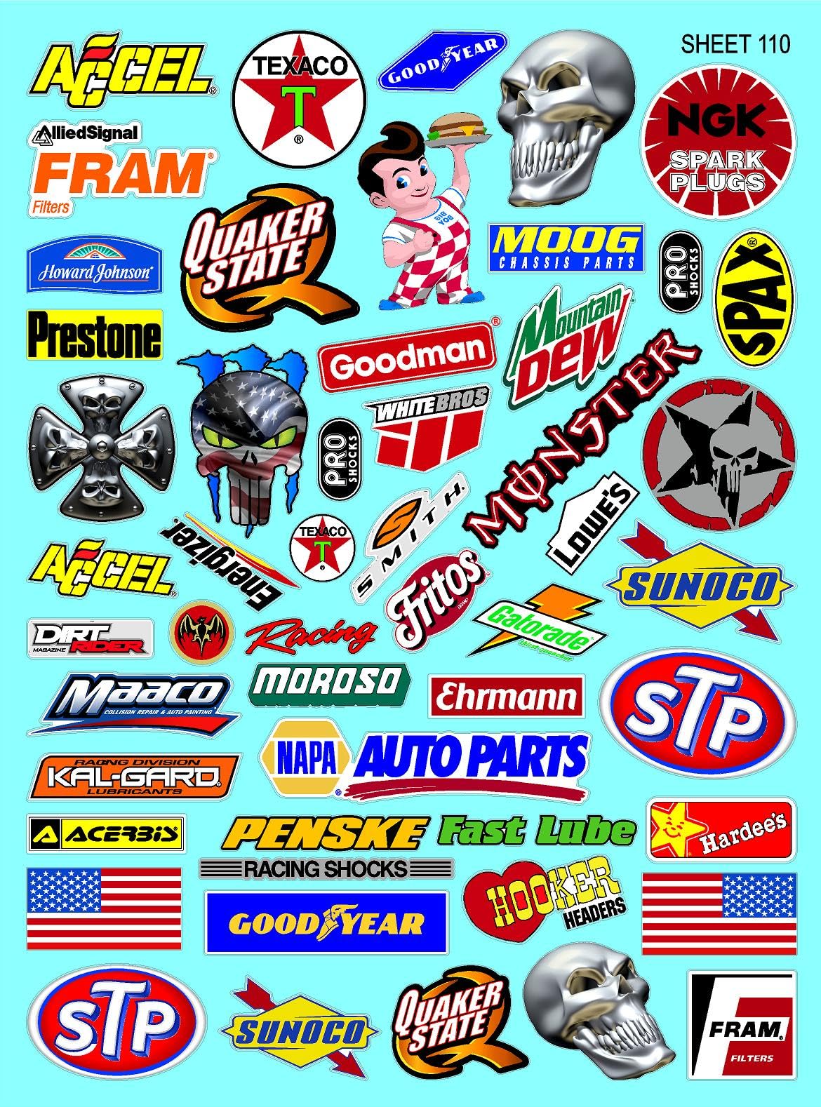 Clear Vinyl Sticker Variety Sheet 110 Variety - 1/12 to 1/10th Scale R/C Model Decal Sticker Sheet Radio Control Lexan Body