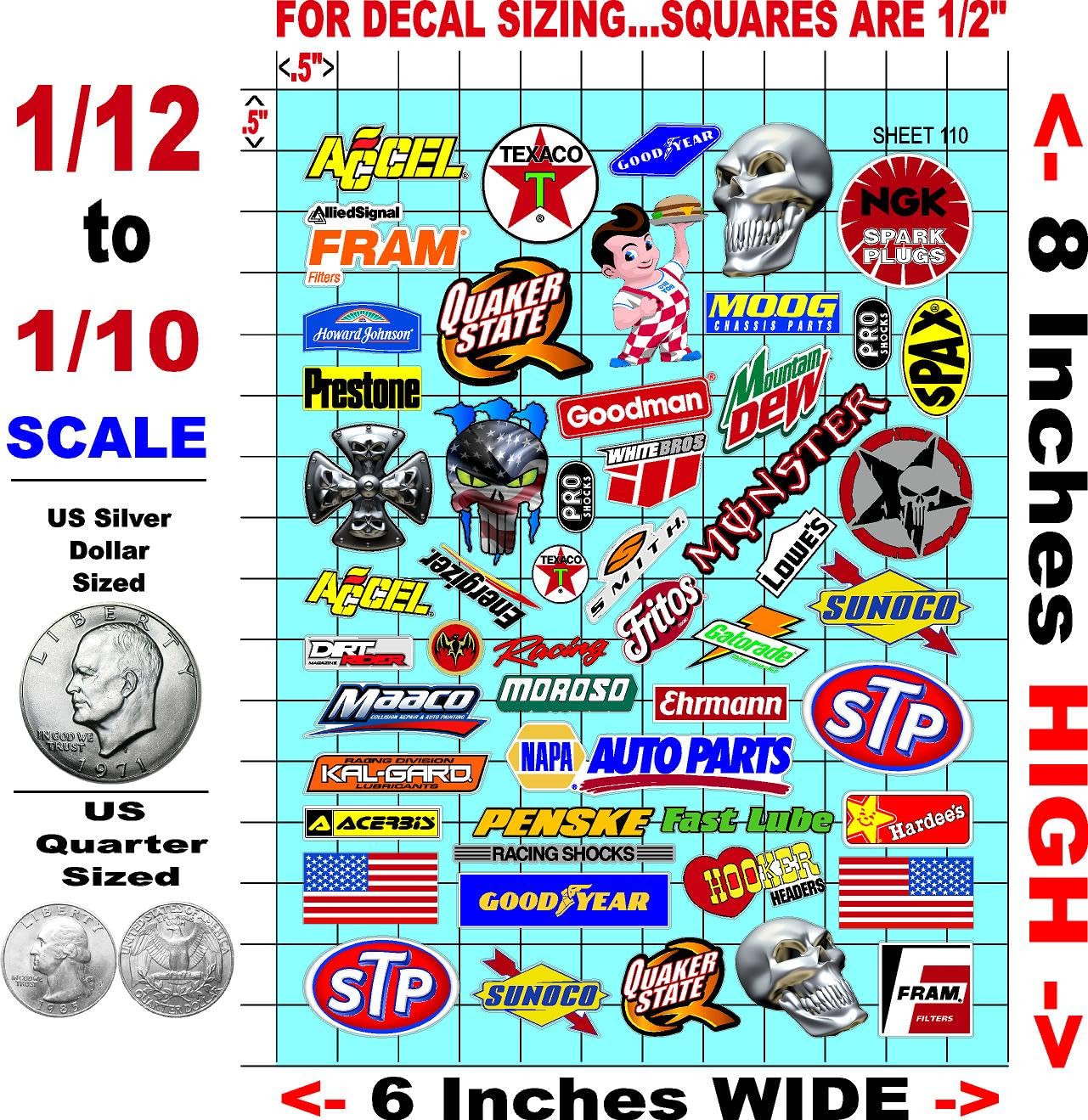 CLEAR Vinyl Sticker Sheet 110 Variety - 1/12 to 1/10th Scale R/C Model Decal Sticker Sheet Radio Control Lexan Body
