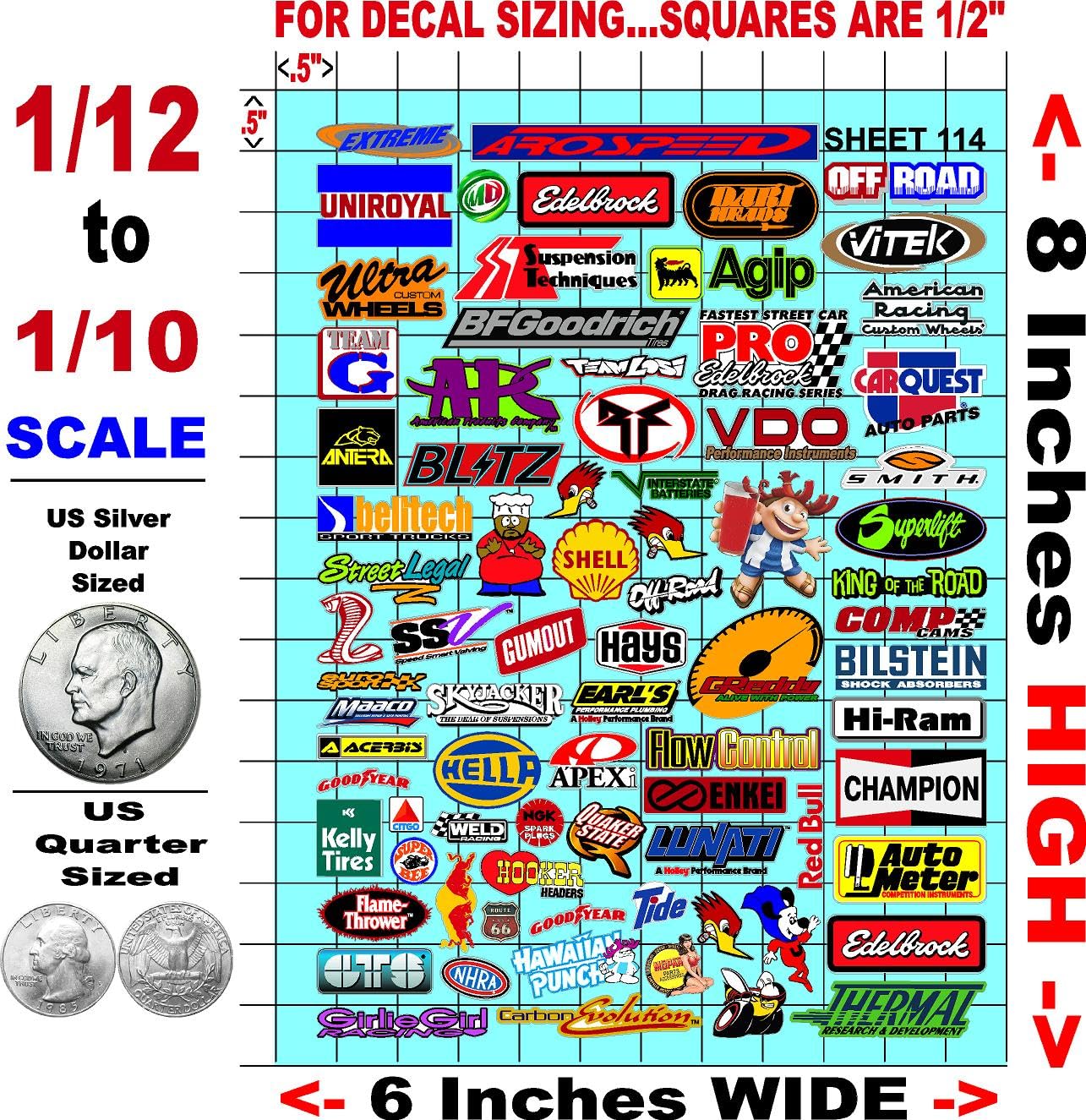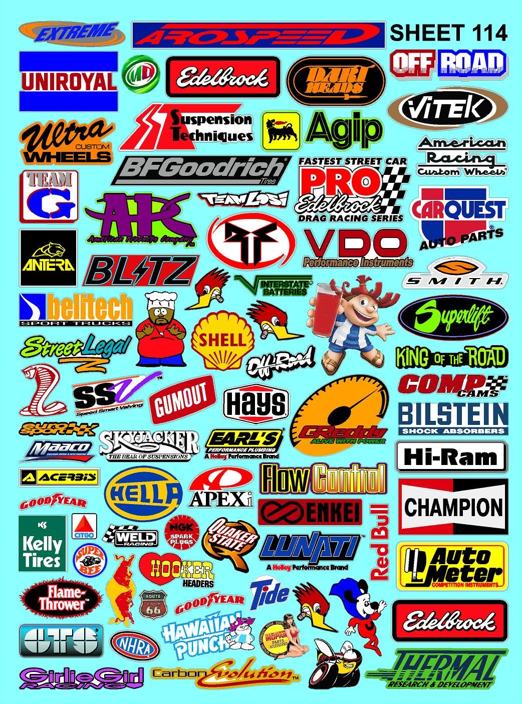 Clear Vinyl Sticker Variety Sheet 114 Variety - 1/12 to 1/10th Scale R/C Model Decal Sticker Sheet Radio Control Lexan Body