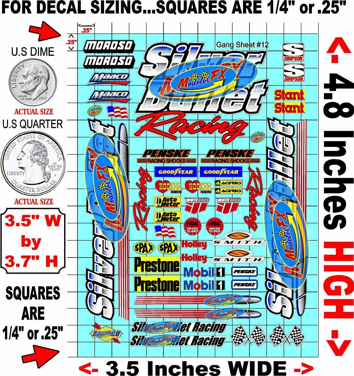 White Vinyl Gloss Sheet 12 R/C Racing Sponsor Sticker Small-1/24-1/16th Scale Model Decal Sticker Radio Control Lexan Body-Graphics for R/c Cars, Boats, Trucks Scale Model–Die-Cut